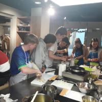 La deuxième partie de journée était plutôt consacrée aux activités culturelles et ludiques. Nos lycéens ont bien joué le rôle de touristes en visitant les différents lieux historiques de la ville : la magnifique cathédrale, la Basilica del Pilar, le théâtre romain, le musée de Saragosse ainsi que les monastères de Piedra et de San Juan de la Pena. Une petite escapade à Huesca, beau parc naturel, a permis à nos français d’admirer des centaines de papillons, une petite parenthèse reposante parmi tout ce programme. Programme très intéressant pour les élèves (et professeurs !) qui ont pu participer à un atelier cuisine, et confectionner des bons tapas, visiter l’aquarium de Saragosse, faire une balade en vélo et se creuser les méninges avec un escape game et tout ça… en espagnol !