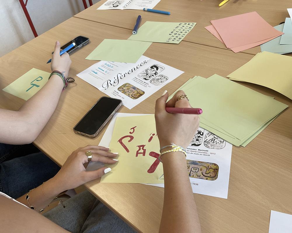 Pour favoriser la rencontre et donner du sens à ce moment d’échange, un projet interdisciplinaire mêlant français et arts plastiques a été mis en place par les deux enseignantes. L’objectif : créer du lien au-delà de la langue, en s’appuyant sur la force expressive des signes et des formes.