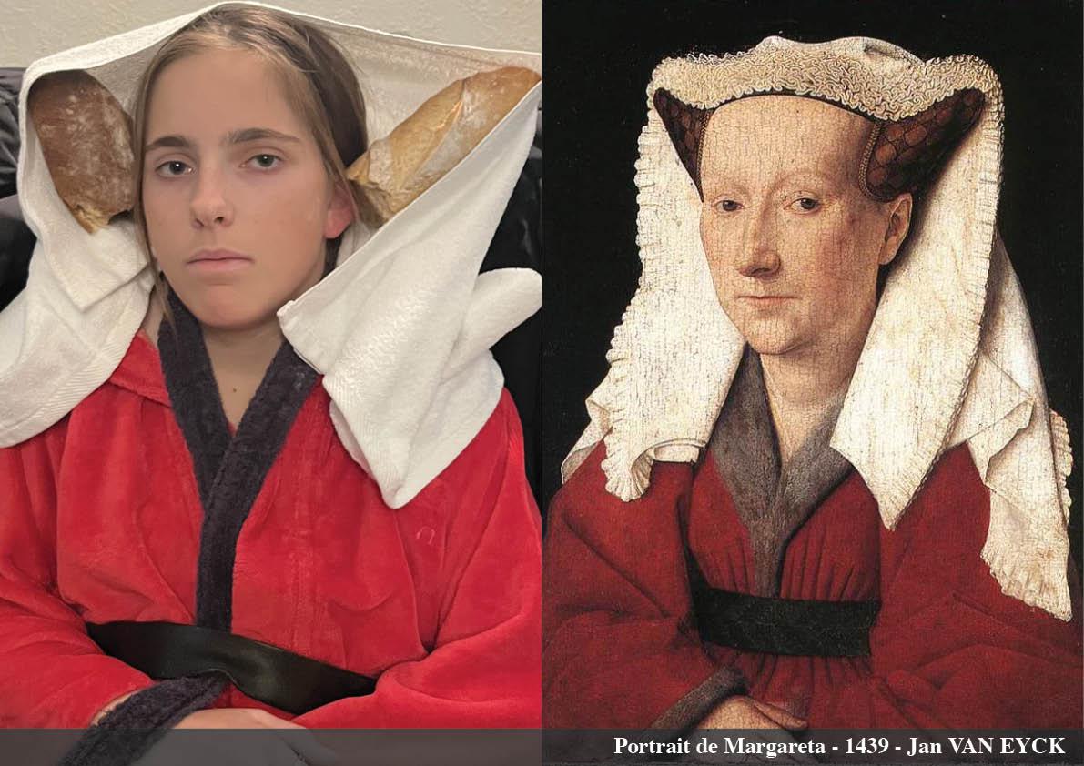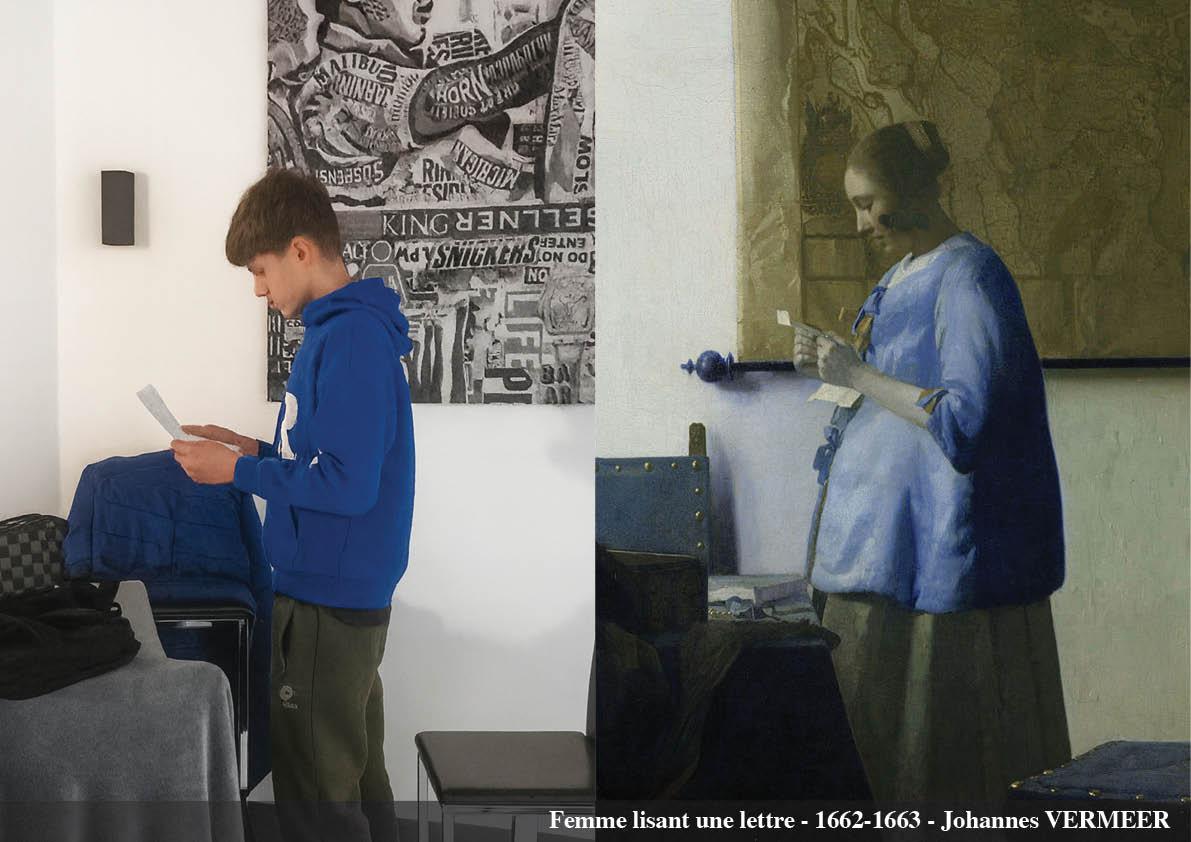 En Arts plastiques, les élèves de 3e ont relevé un défi inspiré du Getty Museum : reproduire un tableau célèbre à la maison en n’utilisant que des objets du quotidien. Avec au moins trois éléments trouvés chez eux ils ont réinventé des œuvres en choisissant de se plonger dans des atmosphères différentes : couleurs, cadrage, composition, gestes, drapés… chacun a travaillé comme un véritable metteur en scène pour transformer vêtements, accessoires ou lampes en véritables outils artistiques. Le résultat ? Une galerie créative, drôle et surprenante, qui montre à quel point l’art peut naître partout — même dans un salon ou une chambre !