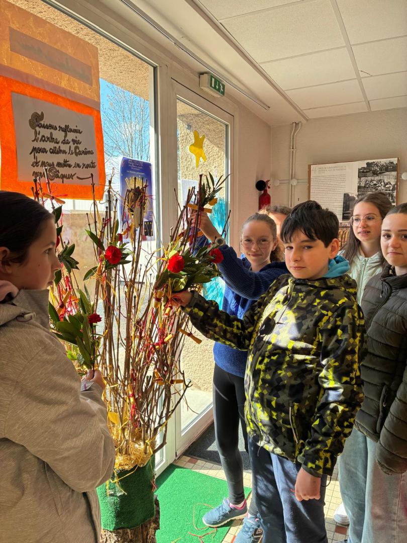 Pour Pâques, Mireille confectionne l’Arbre de vie, particulièrement beau avec ses couleurs rose et jaune. Chaque élève du CDI a pu déposer une intention de prière sur un petit papier, pour l’enrouler et le déposer sur l’Arbre. Les prières montent au Ciel ; et l’Arbre, par sa présence, réchauffe nos cœurs en nous ancrant dans l’espérance de la Vie éternelle.