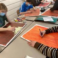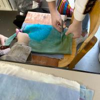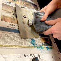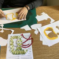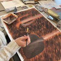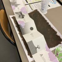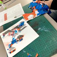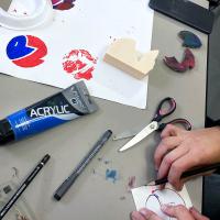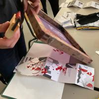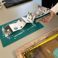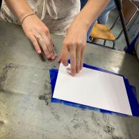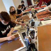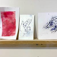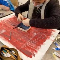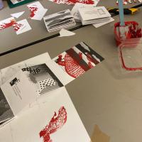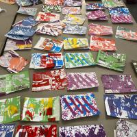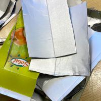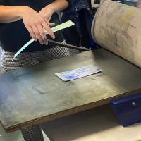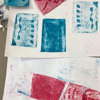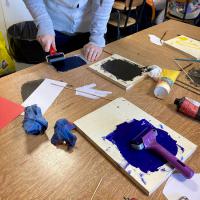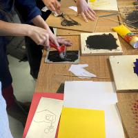 Expérimenter des techniques alternatives pour la gravure en creux avec des emballages de tetra pack et la gravure en relief avec de la colle au pistolet.