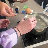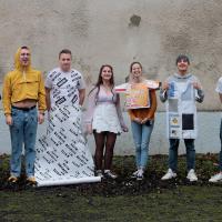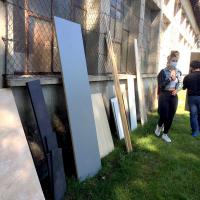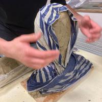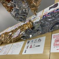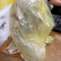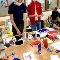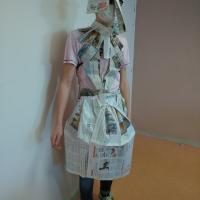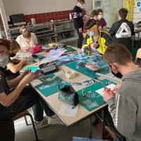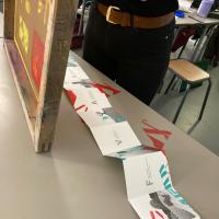 En référence au travail de pliage et aux défilés de mode de l'artiste designer Louise Goldin, les élèves de seconde option Arts plastiques devaient réaliser deux croquis sur une planche puis mettre en évidence en 2D les plis et volume de leur projet. Par la suite en groupe, les élèves ont essayé de travailler à l'échelle de leur choix, une production en 3D de ce concept éphémère, parfois grandeur nature...