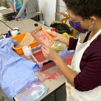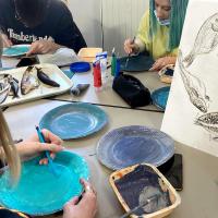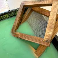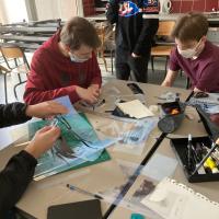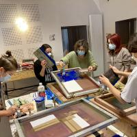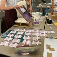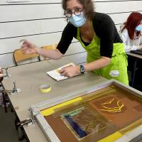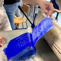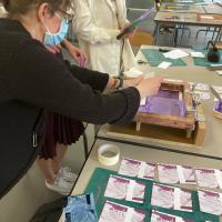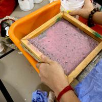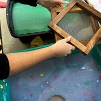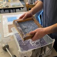 Les étudiants, dans une démarche écologique, sont amenés à maîtriser la fabrication du papier, de la récupération à la mise sous cadre. Les résultats obtenus sont destinés à être ré-expliqués en atelier gravure.