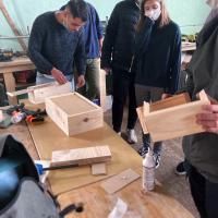 Découpes complexes, cohabitation de matériaux, assemblage, prise en compte des tranches, intégration de la couleur et du motif permettaient de répondre aux diverses problématiques de réalisation. Au final chaque binôme faisait part de son expérience, ses objectifs à travers l'objet, les problèmes rencontrés et les motifs de satisfaction.