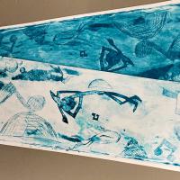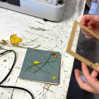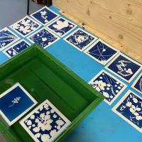 Les élèves abordent par le biais de cette atelier les principes de l'insolation et la maîtrise des produits photosensibles. Ils se réalisent des productions à partir de végétaux dont les formes viennent épargner le papier et contraster avec le fond bleu, caractéristique de la technique