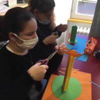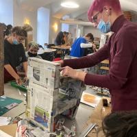 Les élèves doivent fabriquer la plus haute sculpture en papier ! Attention à l'équilibre…