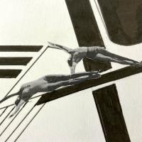 Rythme, confrontation, lignes, signes, formes, silhouettes.