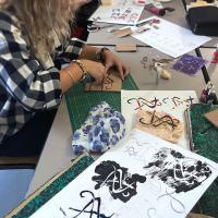 Sur le principe du monogramme les étudiants sont invités à proposer une version de leurs initiales sous formes de tampon. La possibilité est offerte de réaliser leur travail en 3D. L'exercice permet de réfléchir sur les principes de la gravure.
