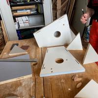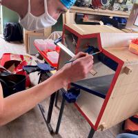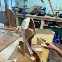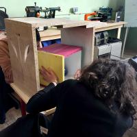 Pour ce workshop de fin d'année les deux designers avaient décidé de proposer une situation d'atelier afin de conforter les apprentissages tout en menant une réflexion autour d'un projet. Tristan Remy & Mattéo Cassonnet invitaient les étudiants à concevoir et réaliser un mobilier reprenant le style Memphis à partir de chutes de mélaminé ou bois en interrogeant le rapport à l'ornementation et aux références historiques.