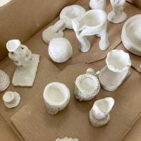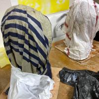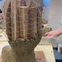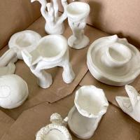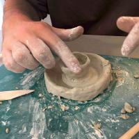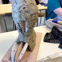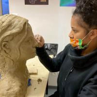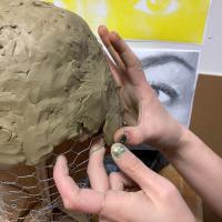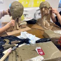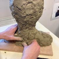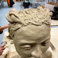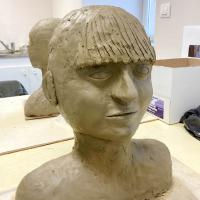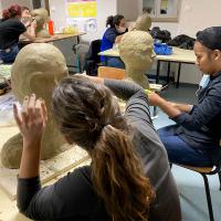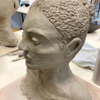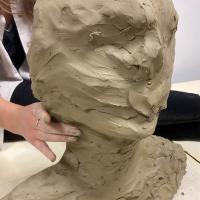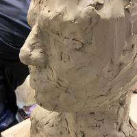 Travail préparatoire pour l'atelier modelage. Portrait en vis-à-vis en céramique. Travail de volume, de rendu et d'élaboration de signes.