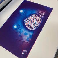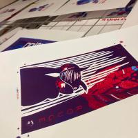 Production d'une couverture pour une collection de roman noir. Travail en sérigraphie et en quadrichromie en utilisant des jeux de trame.