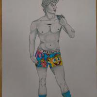 Travail d'arts plastiques de la classe de première STD2A, en référence à de nombreuses publicités s'appuyant sur une œuvre célèbre.