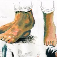 Dessin d'observation, aquarelle et peinture en prenant en compte les principes de plein/vide, forme/contreforme.