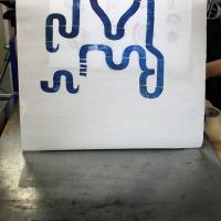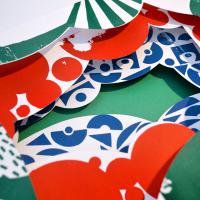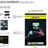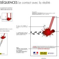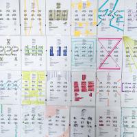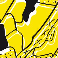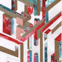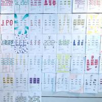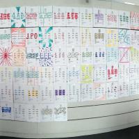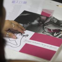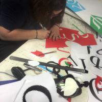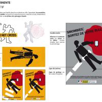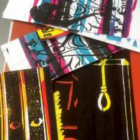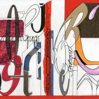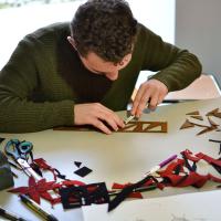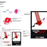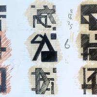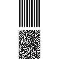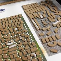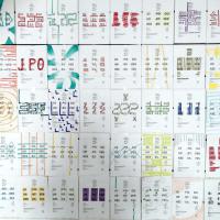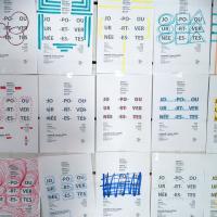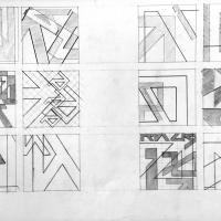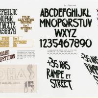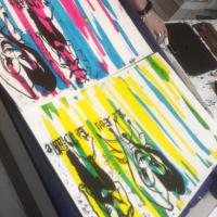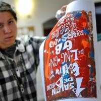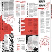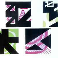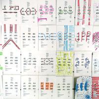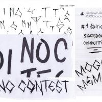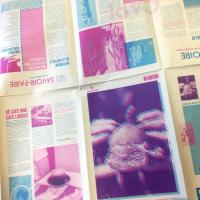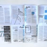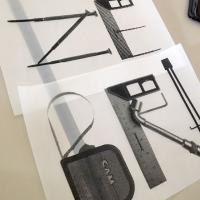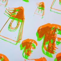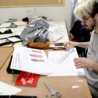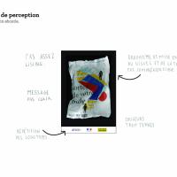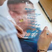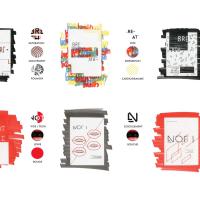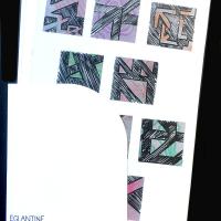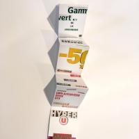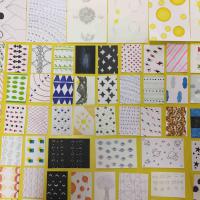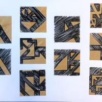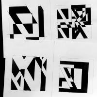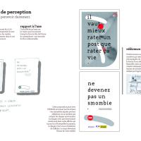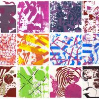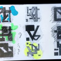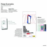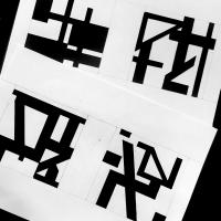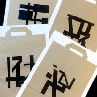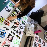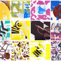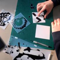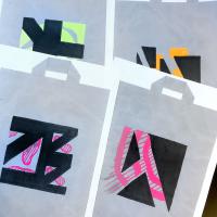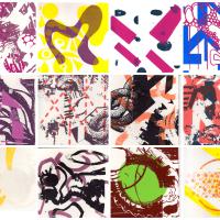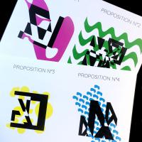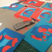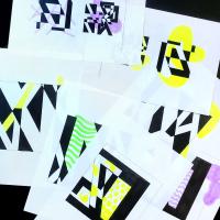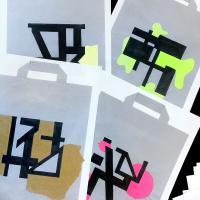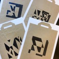 A partir des films de sérigraphie usagés, les DNMADe DG1 sont invités à recomposer des visuels en mêlant ces chutes et en proposant un tirage en 2 couleurs. Compositions abstraites, confrontations des morceaux de signes et des couleurs.