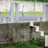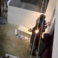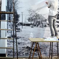 Repérer et réparer la ville. L'enjeu de cette intervention tourne autour d'une ré-interprétation de l'espace urbain à l'intérieur de la galerie du lycée, en tant que lieu possible d'une intervention.