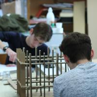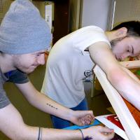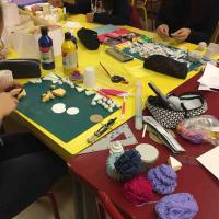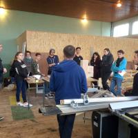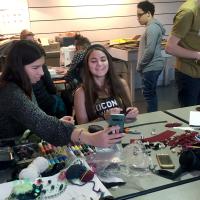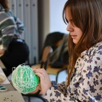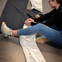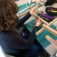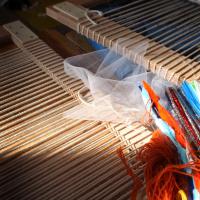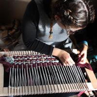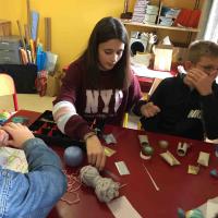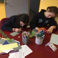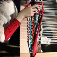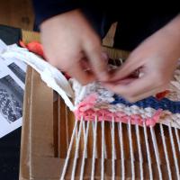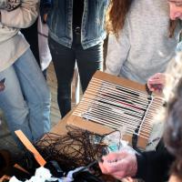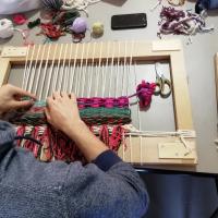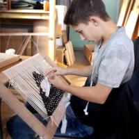 Les élèves de 1ères STD2A sensibilisés aux techniques du tissage en présence de Jacques Bernard, artisan lissier. Présentation des différentes techniques, construction des cadres et expérimentation à travers l'utilisation de divers matériaux issus de la récupération.