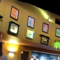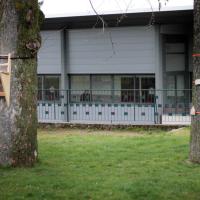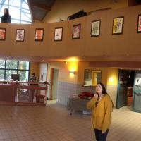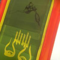 Dans le hall de la salle polyvalente les propositions graphiques et plastiques soulignanient et mettaient en valeur l'espace.
