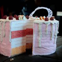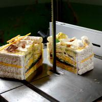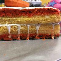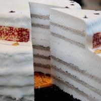 Une fois coupé, chaque pâtisserie dévoile ses couches de biscuits et crème de toutes sortes.