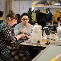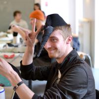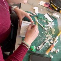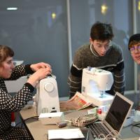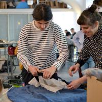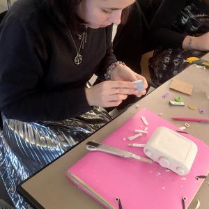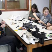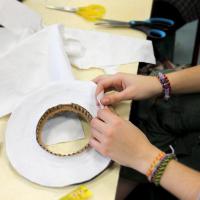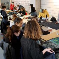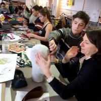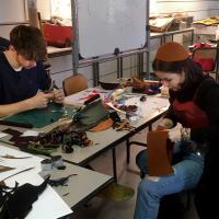 Marion Clément, styliste et modiste animait un atelier de 3 jours. Arrivant directement du défilé de Jean-Paul Gautier où elle présentait des créations, elle prenait en main les élèves pour les amener par le biais d'expériences à l'élaboration d'un bibi très personnel.