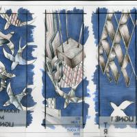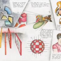 Etudes pour les couvertures avec rabats. Elaborations de propositions à partir de l'univers graphiques de chaque artiste.