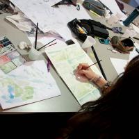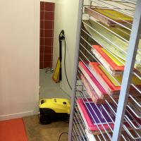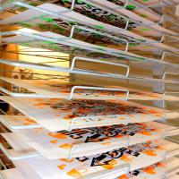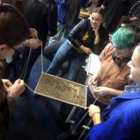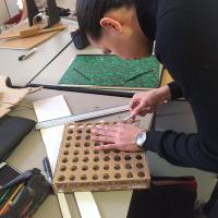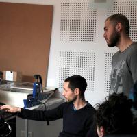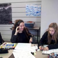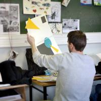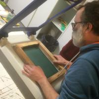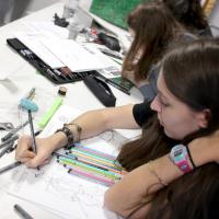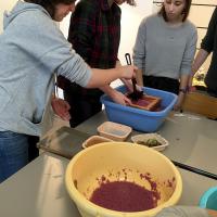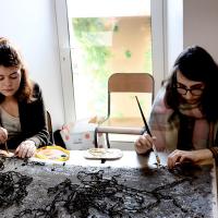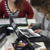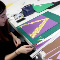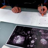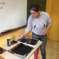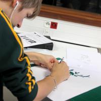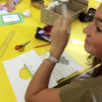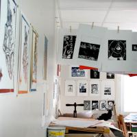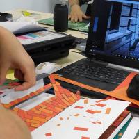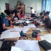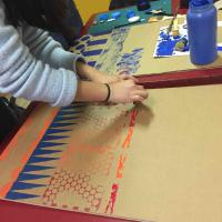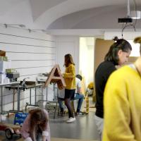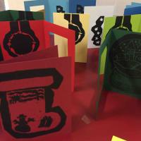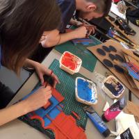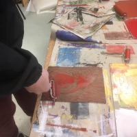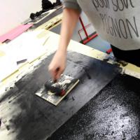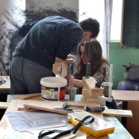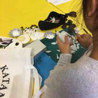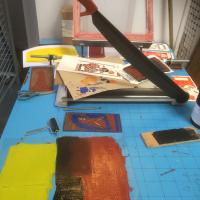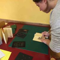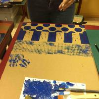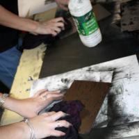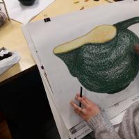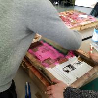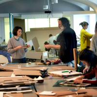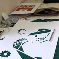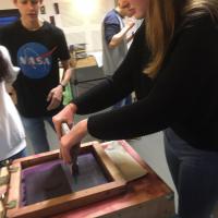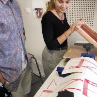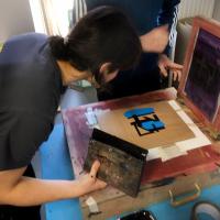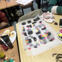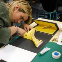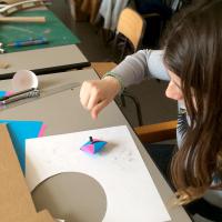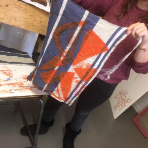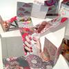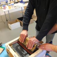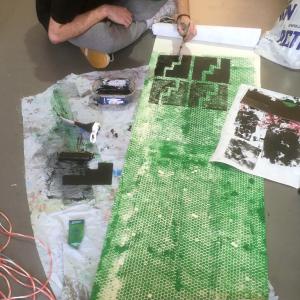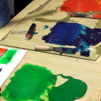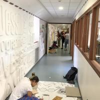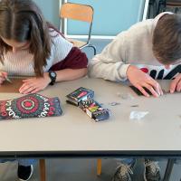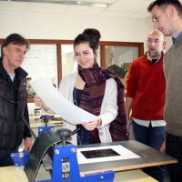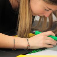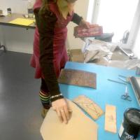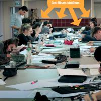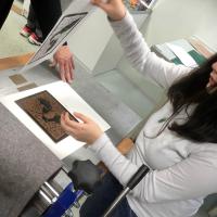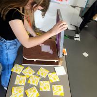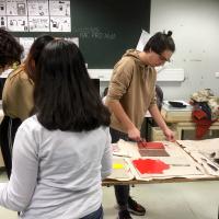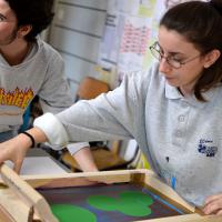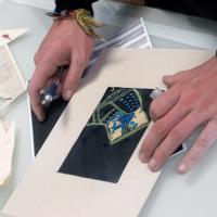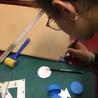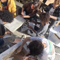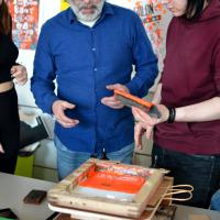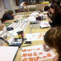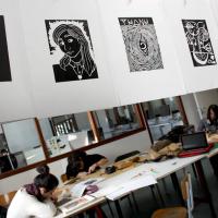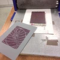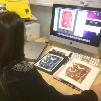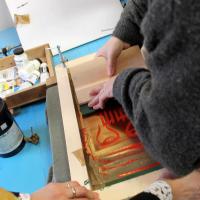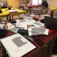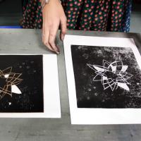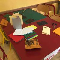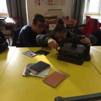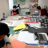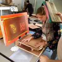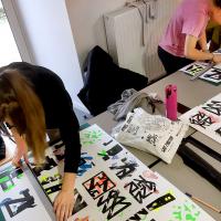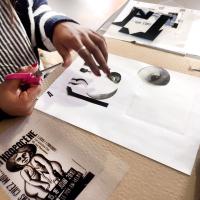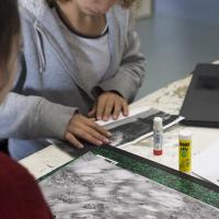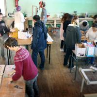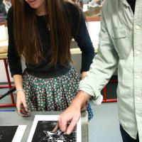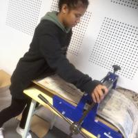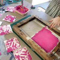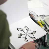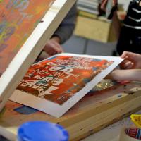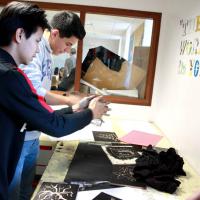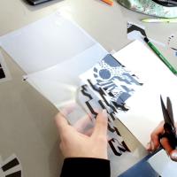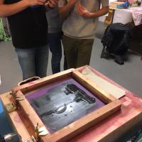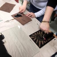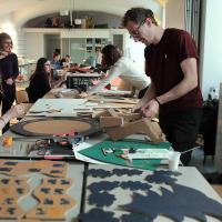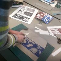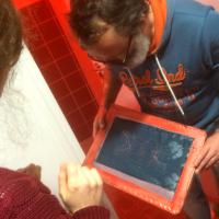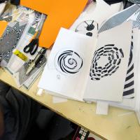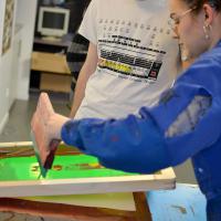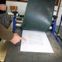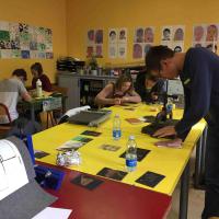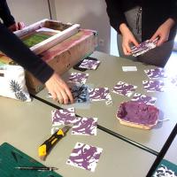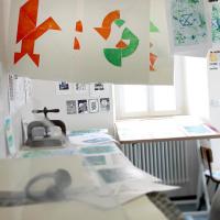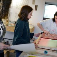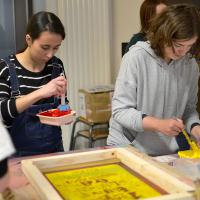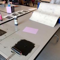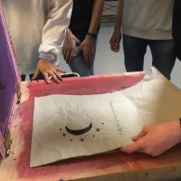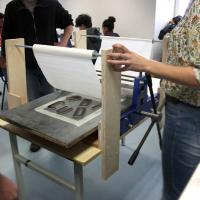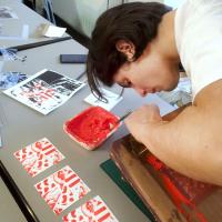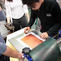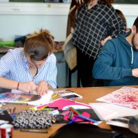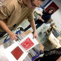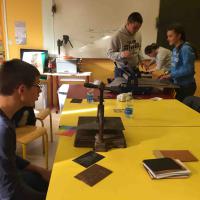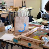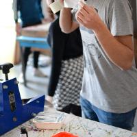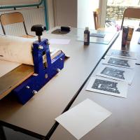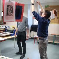 Élaborer un motif, préparer sa plaque et imprimer, les élèves découvrent toutes les phases qui les amènent à produire des impressions sur papiers. Leurs salles de cours sont transformés en un atelier vivant et interactif où se déploient les différents postes de production.