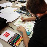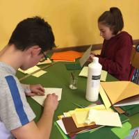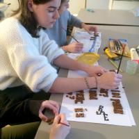Travaux sur les affiches du premier salon de la micro-édition au lycée St Pierre-St Paul de Langogne.