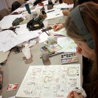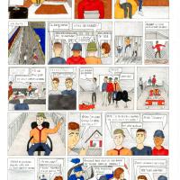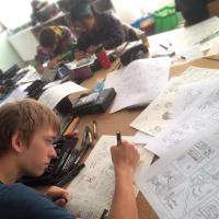 Les élèves découvrent la construction d’une bande dessinée, à travers la conception et réalisation d’une histoire au format A3, du scénario à la production en passant par toutes les phases de recherches.