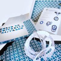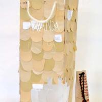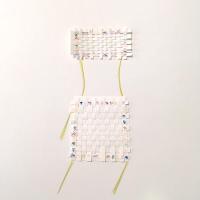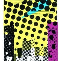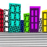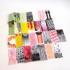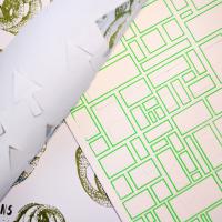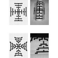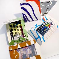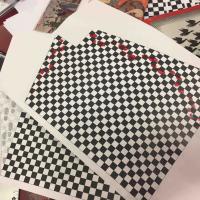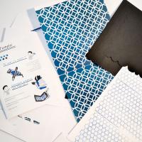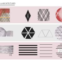 Travail graphique autour de la trame pour les journées portes ouvertes présentées dans emballages dont les motifs sont repris du travail précédent. Découpe numérique.
