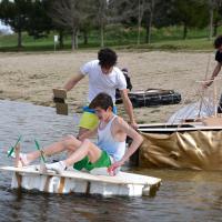 Les élèves expérimentent les principes de flottaison. Après avoir réfléchi et conçu des engins à flotter, il était temps de se lancer à l'eau.