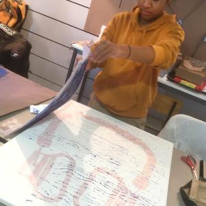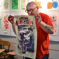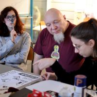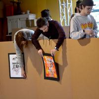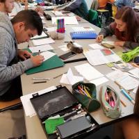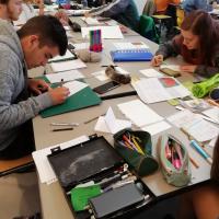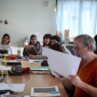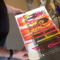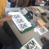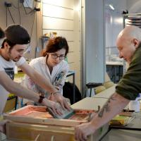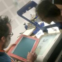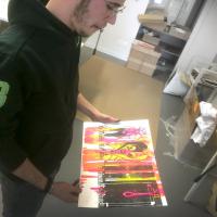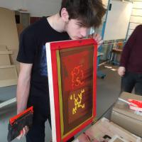 Les DNMADe durant 4 jours (du 22 au 24 janvier 2020) travaillent à l'élaboration et au tirage en sérigraphie de l'affiche du 1er salon de la micro édition au lycée St Pierre-St Paul. Bonne humeur, motivation et la récompense du travail réalisé ainsi que la rencontre avec un professionnel accessible.