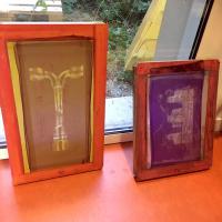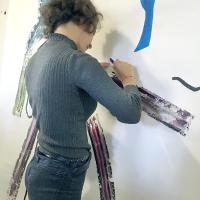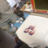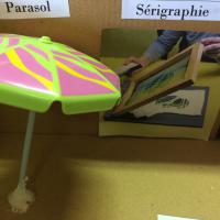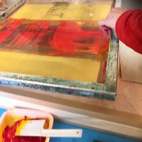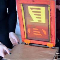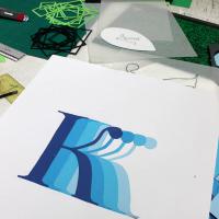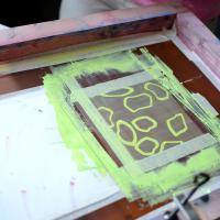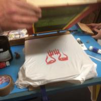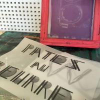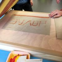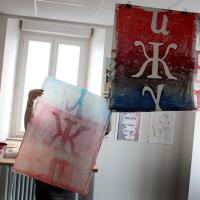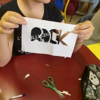 Premier pas en sérigraphie sur le thème d’un alphabet dont les lettres sont constituées à partir d’objets.