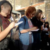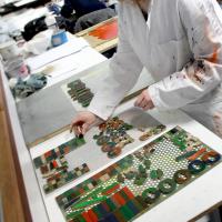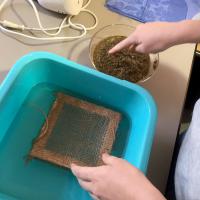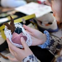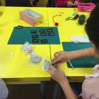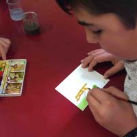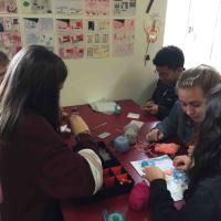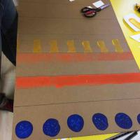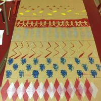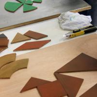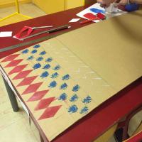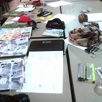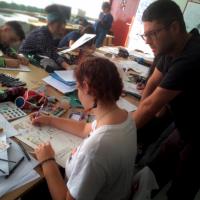Cloture de l'atelier : le Samourai. Chaque groupe produit un élément de l'armure (motifs, liens, attaches...).
