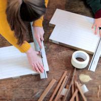 Assemblage sous forme de carnet : plier, agrafer piquer à cheval, massicoter.