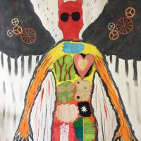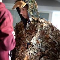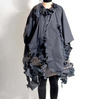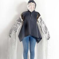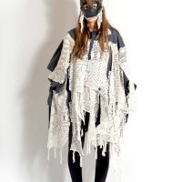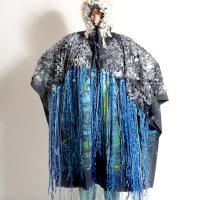Transformation d’un poncho de pluie purement fonctionnel en une parure spectaculaire (spectacle ou défilé) dans lequel votre part animal doit ressortir. Le corps devient sculpture vivante.
