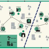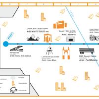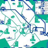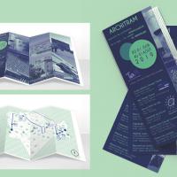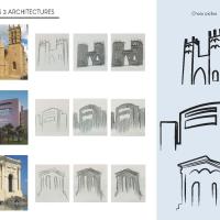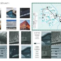 Concevoir un dépliant A3 permettant de découvrir les architectures typiques de la ville de Montpellier le long de la ligne 1 du tramway.