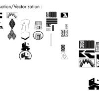 A partir du logo de l'établissement, travail de déstructuration, de construction, d'élaboration de signes géométriques. Travail en bi-chromie en juxtaposant une animation graphique plus expressive et organique.