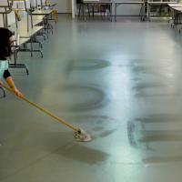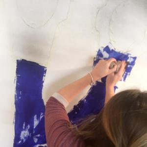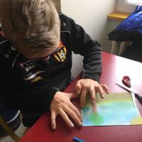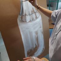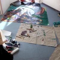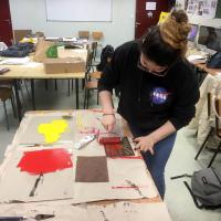 Les élèves répondent à une problématique « technicien de surface » où ils doient traiter une surface à peindre à travers des artifices remplaçant une action directe sur la toile.