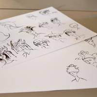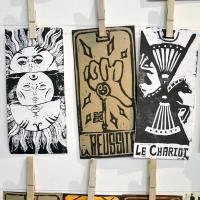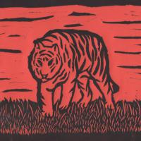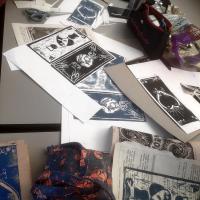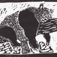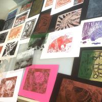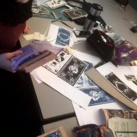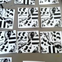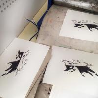Elaborer un bestiaire. Linogravure et tirage sur divers papiers.