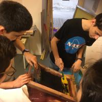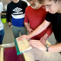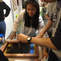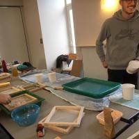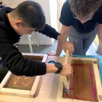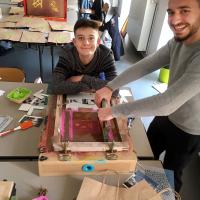 Avant de réaliser leurs premiers tirages en sérigraphie, les étudiants fabriquent leur propre kit en atelier. Les pièces nécessaires sont fabriquées en 3D dans l'établissement. C'est l'occasion de s'initier au matériel.