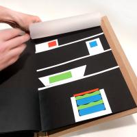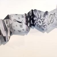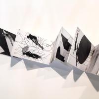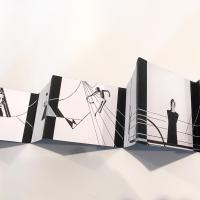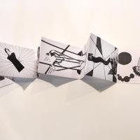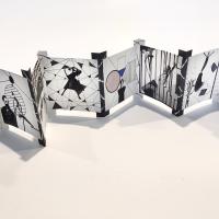 Les élèves réalisent une série de livre en accordéon mettant en scène des séquences du cinéma muet ou expérimental en huit images clés.