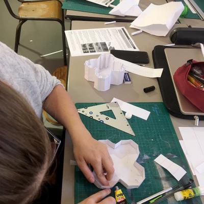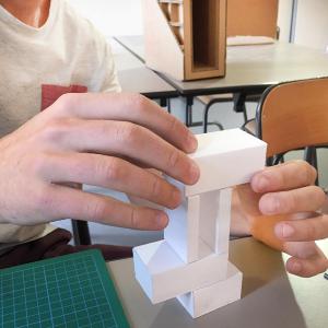 Assimilation des volumes à construire en carton à travers l’élaboration de maquettes en papier.