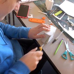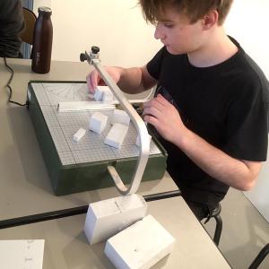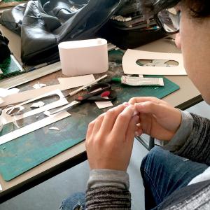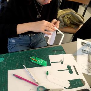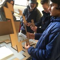 Le sténopé : découverte formelle à travers divers matériaux, terre, mousse, métal, permettant la reproduction du modèle. Assemblage de l'original imprimé en 3D au sein de l'établissement.