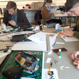 Les élèves évoluent en groupe et proposent une maquette de leur projet au final.