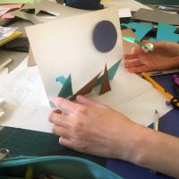 Conception et réalisation du ouvrage sur le principe du pop-up. Réalisation manuelle en groupe puis réalisation en numérique.