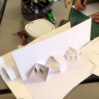 Les pop-up réalisés dans un premier temps manuellement à l'état de projet sont conçus numériquement de façon à automatiser les découpes et les tirages des motifs se font en sérigraphie. Les projets sont présentés et vendus dans des kits prêt à monter au 1er salon de la micro-édition.