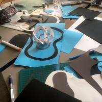 Les élèves répondent à une problématique « 2D/3D » où ils sont amenés à réfléchir une articulation entre la surface 2D et la mise en volume fictive ou réelle.