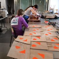 Chaque étudiant imprime sa série de 15 sacs recto/verso. Travail par groupe de trois. Les sacs seront distribués lors de la journée portes ouvertes.