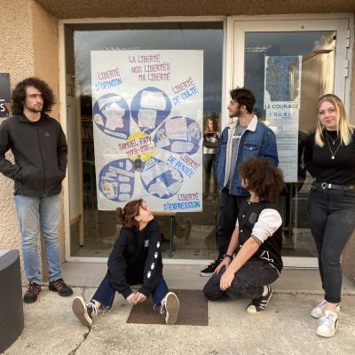 Le 16 octobre 2020, Samuel Paty, un professeur d’histoire était assassiné par décapitation lors d’une attaque terroriste. Dix jours avant, il avait présenté à ses élèves deux caricatures de Mahomet issues du journal satirique Charlie hebdo lors d’un cours d’enseignement moral et civique sur la Liberté d’expression. En cette journée d’hommage, les élèves présents au CDI ont réfléchi avec mots et dessins autour du thème des Libertés et les lycéens de terminale AMA CVPM ont réalisé un panneau écrit et dessiné autour de réflexions sur : « La Liberté. Ma Liberté. Nos Libertés.»