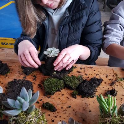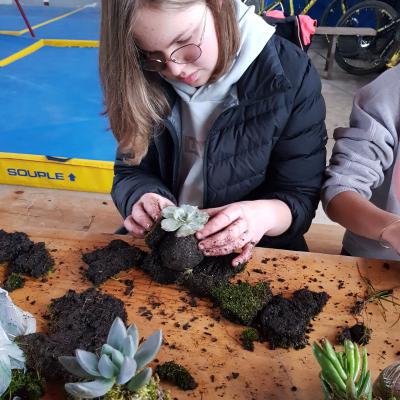 L'éco-collège de l'Ensemble Saint Pierre - Saint Paul a poursuivi ses efforts d’aménagements et de biodiversité. Il a été décidé de réaliser des kokedamas (sphères de mousse, un art floral japonais) grâce au partenariat avec une enseignante des Arts appliqués en lycées, Madame Dufour Marina.