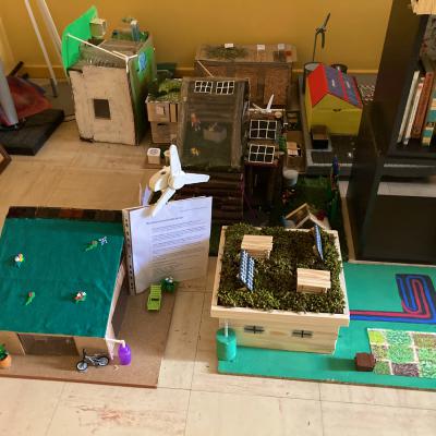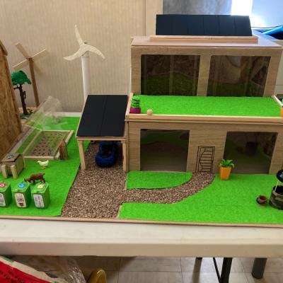 Après avoir travaillé sur l’étude de l’éco-quartier londonien Bedzed les 6° vont tester leurs compétences d’observation, d’analyse et de compréhension des enjeux en réalisant une maquette. Elle doit permettre de mieux appréhender un bâti du futur tenant compte du développement durable (un immeuble ou une maison... avec des énergies renouvelables, des choix d’isolation, le tri et le recyclage de déchets, la récupération d’eau de pluie,..). Cette maquette vise donc à travailler autrement et dans l’interdisciplinarité (exploiter la Géographie, l’EMC, l’Art et les travaux manuels...) tout en s’interrogeant sur les défis et les complexités pour l’habitat de demain (c’est plus concret). Le professeur a demandé qu’elle soit réalisée à partir de produits à recycler, c’est dans le but de donner une seconde vie à ces produits (il ne demande pas d’en acheter et donc d’être énergivore : elle est à réaliser avec des cartons, boîtes, chutes de papier mural ou de planches, etc..).